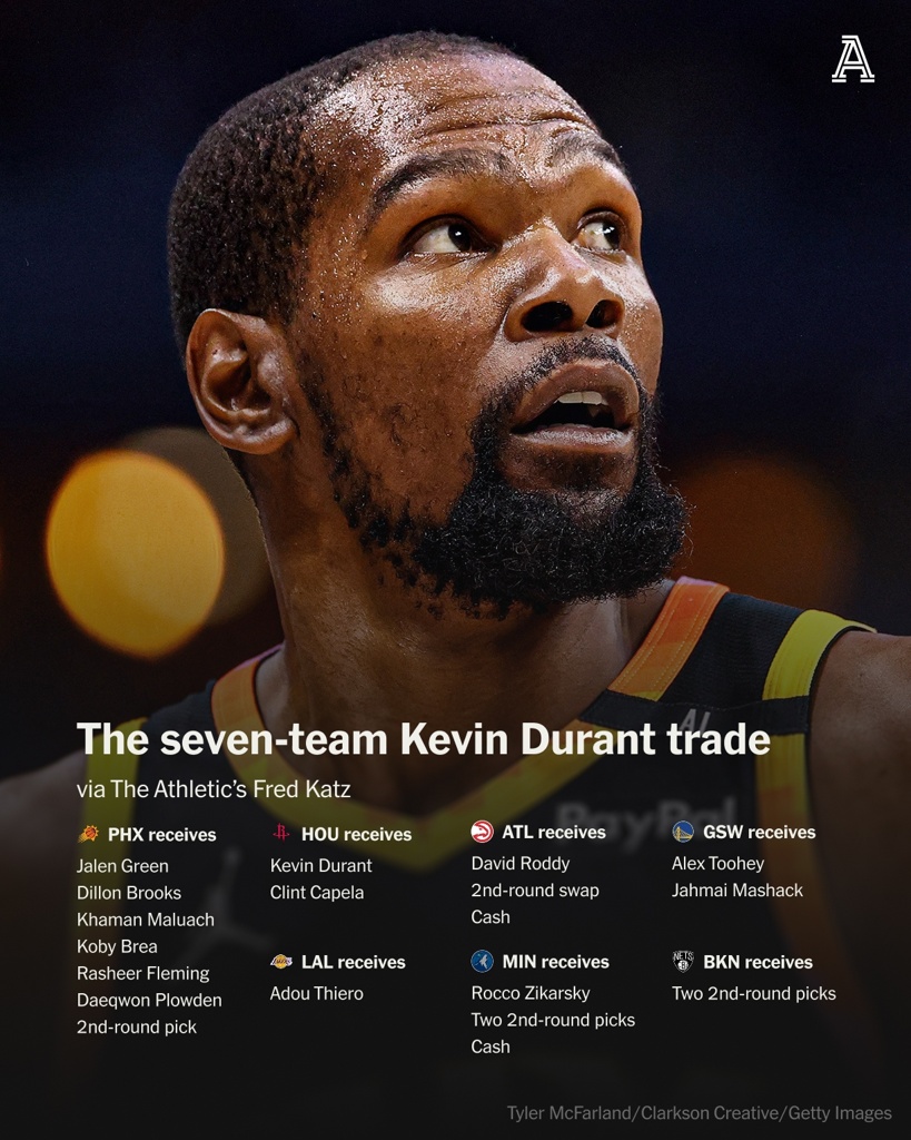 历史最大交易!火箭官宣7方超级交易 得到杜兰特和卡佩拉!