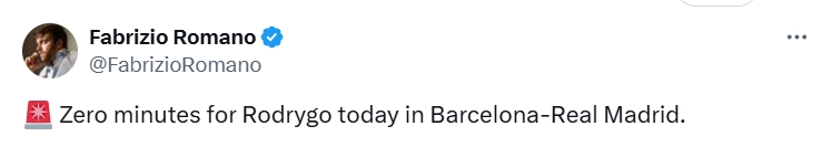 知名记者罗马诺也发布社媒,感叹罗德里戈本场比赛未出场。
